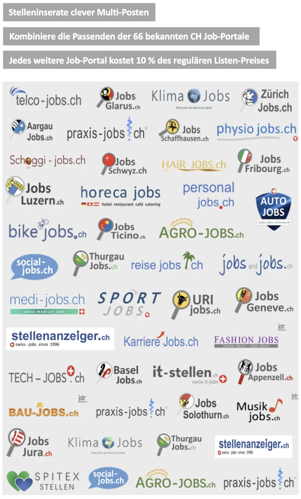 Betriebe bis 10 Mitarbeitende, alle Stellen-Inserate ab 580.- CHF im Jahr